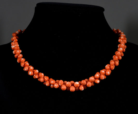 Art Deco Momo Coral Dog Bone Bead Necklace C.1930