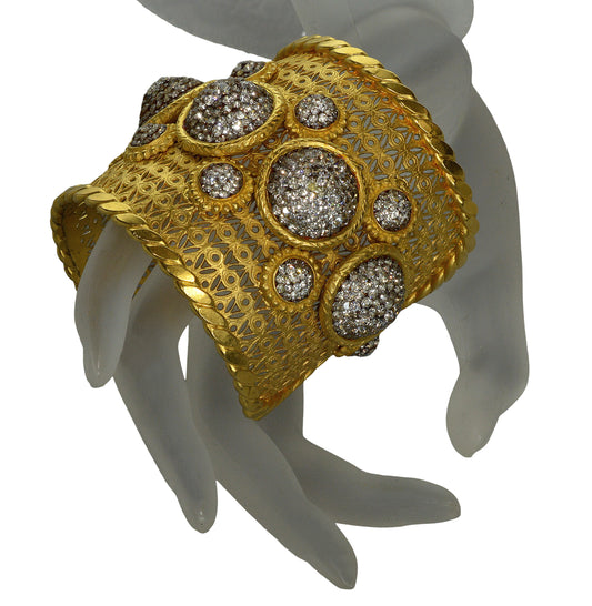 Deanna Hamro Etruscan Revival Cuff Bracelet Swarovski Crystals 80's