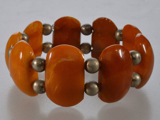 Antique Natural Baltic Butterscotch Egg Yolk Amber Stretch Bracelet C.1920