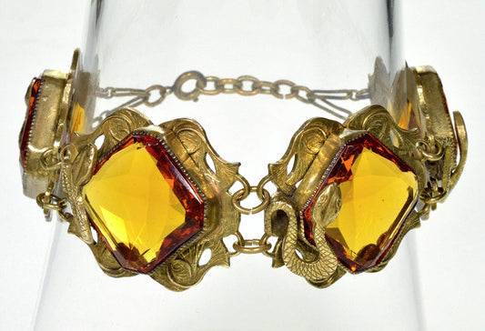 Antique Art Nouveau Egyptian Revival Brass Snake Czech Glass Bracelet C.1900