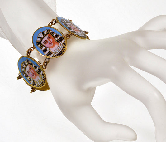 Art Deco Egyptian Revival French Enamel Pharaoh Bracelet C.1920