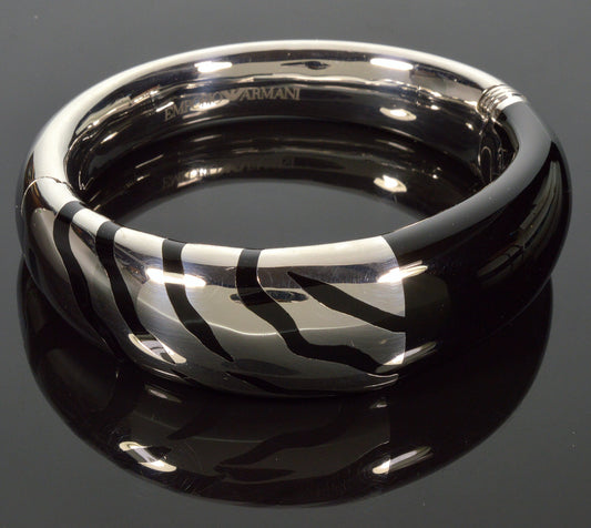 Emporio Armani Zebra Enamel Sterling Bangle Bracelet NWT