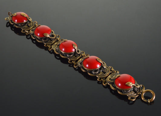 Antique Neiger Snake Lipstick Red Czech Glass Bracelet C.1920