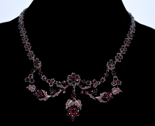 Antique Victorian Bohemian Garnet Necklace Earrings Set C.1890