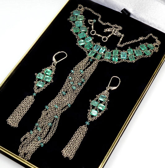 Anthony Nak Emerald Necklace Earrings Set Sterling