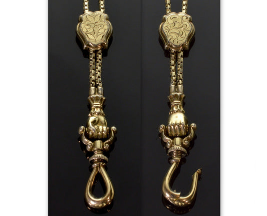 Antique Georgian 14K Gold Hand Fist Necklace Slide Guard Chain C.1820