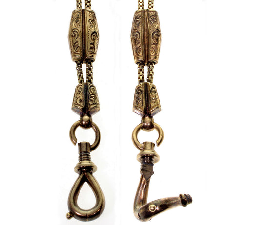 Reserved for L. Antique Victorian 14K Gold Double Albert Watch Chain Necklace C.1890
