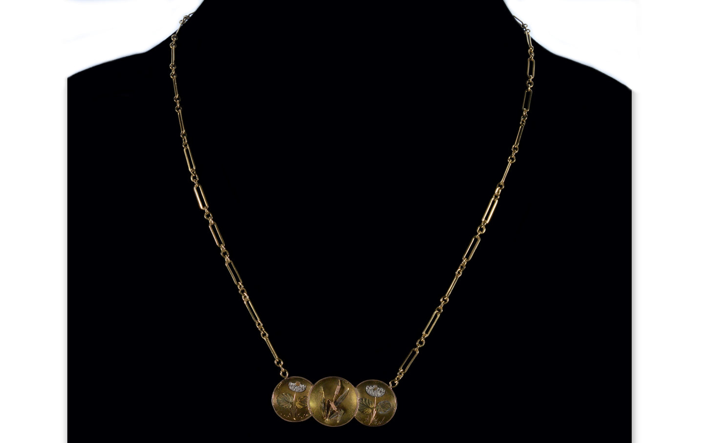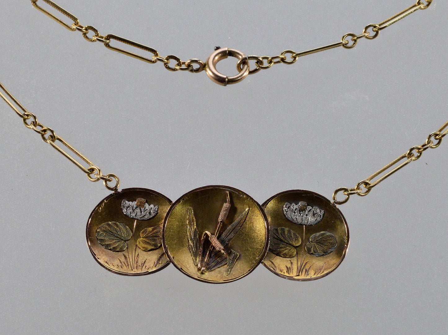 Delicate Art Nouveau 14K 4-tone color gold pendant