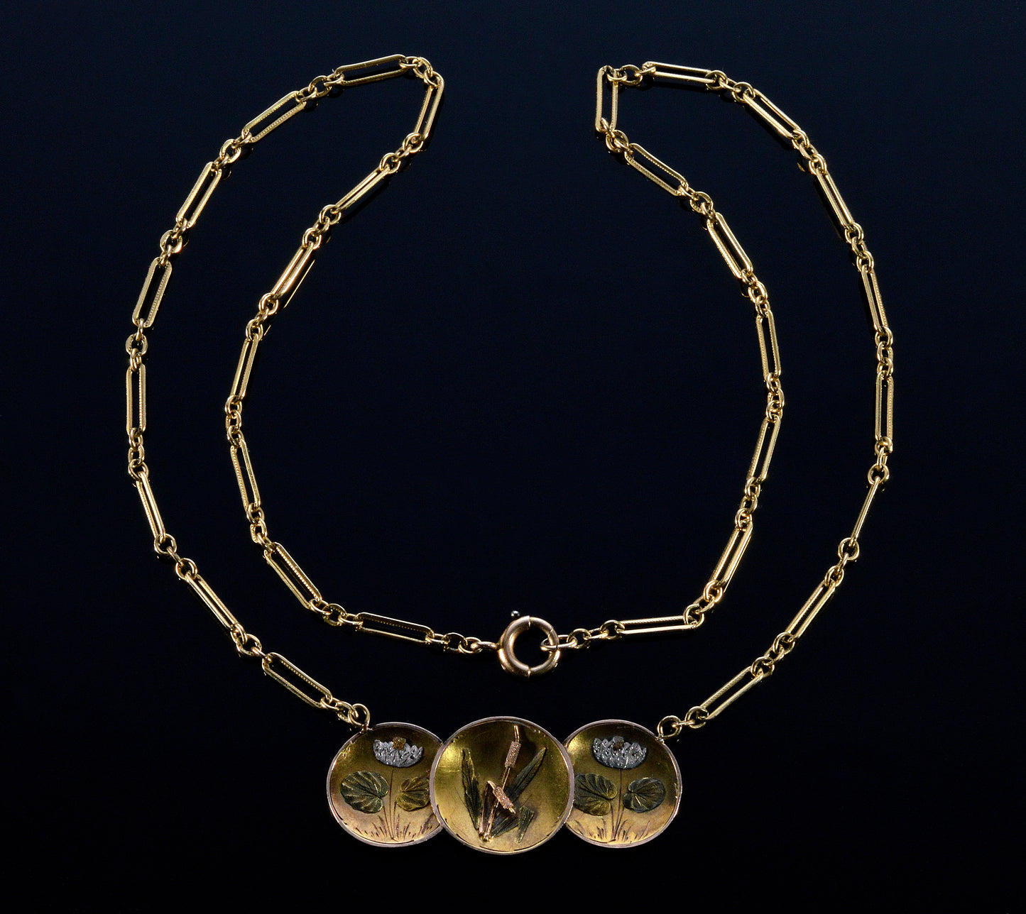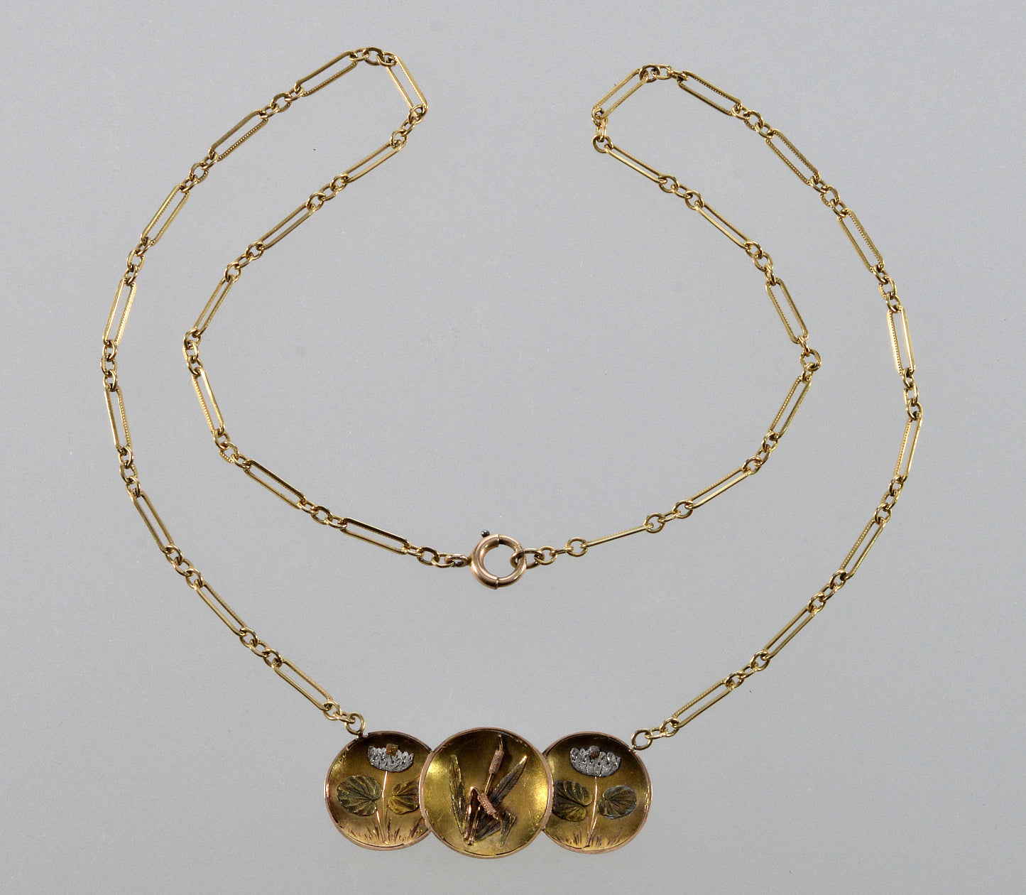 Antique Art Nouveau 14K Gold Pendant Necklace 10K Paperclip Chain 1900