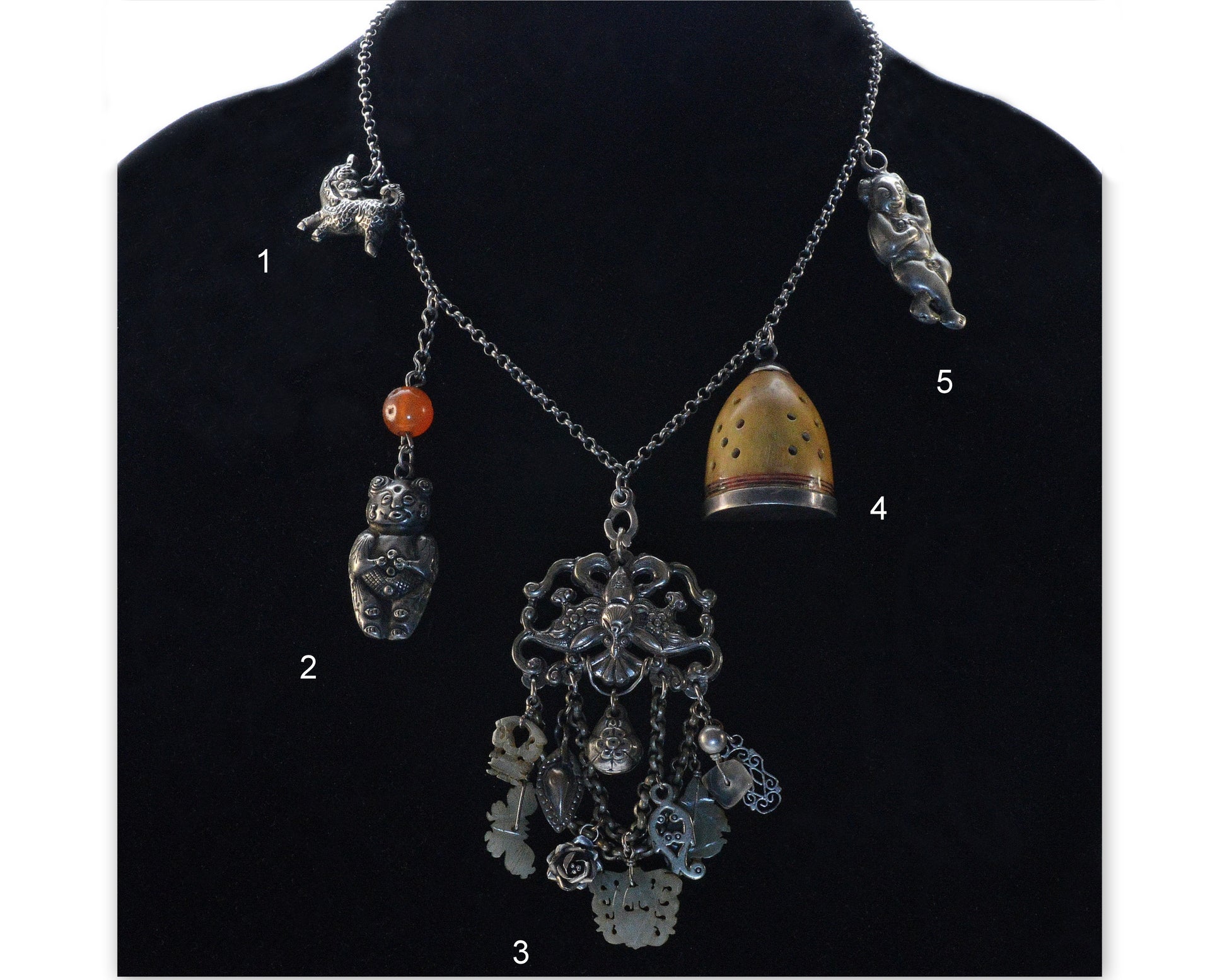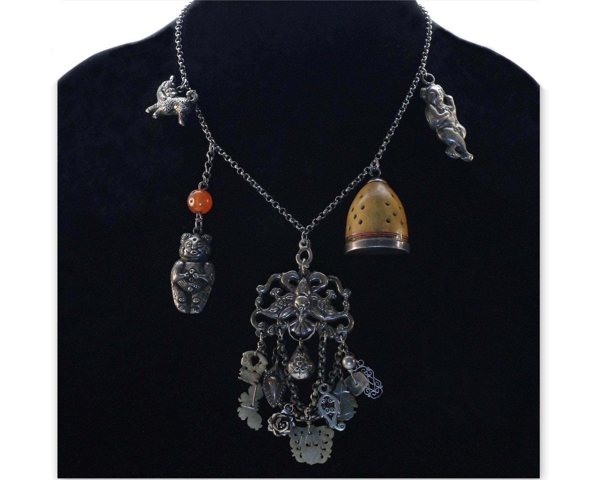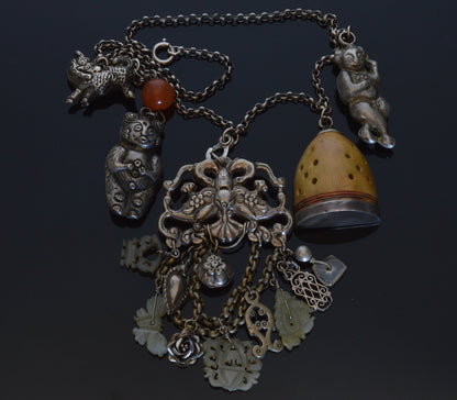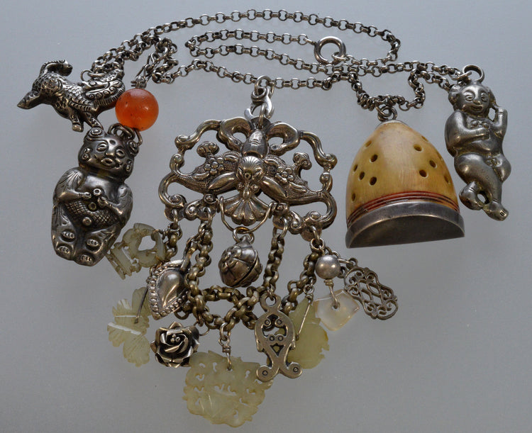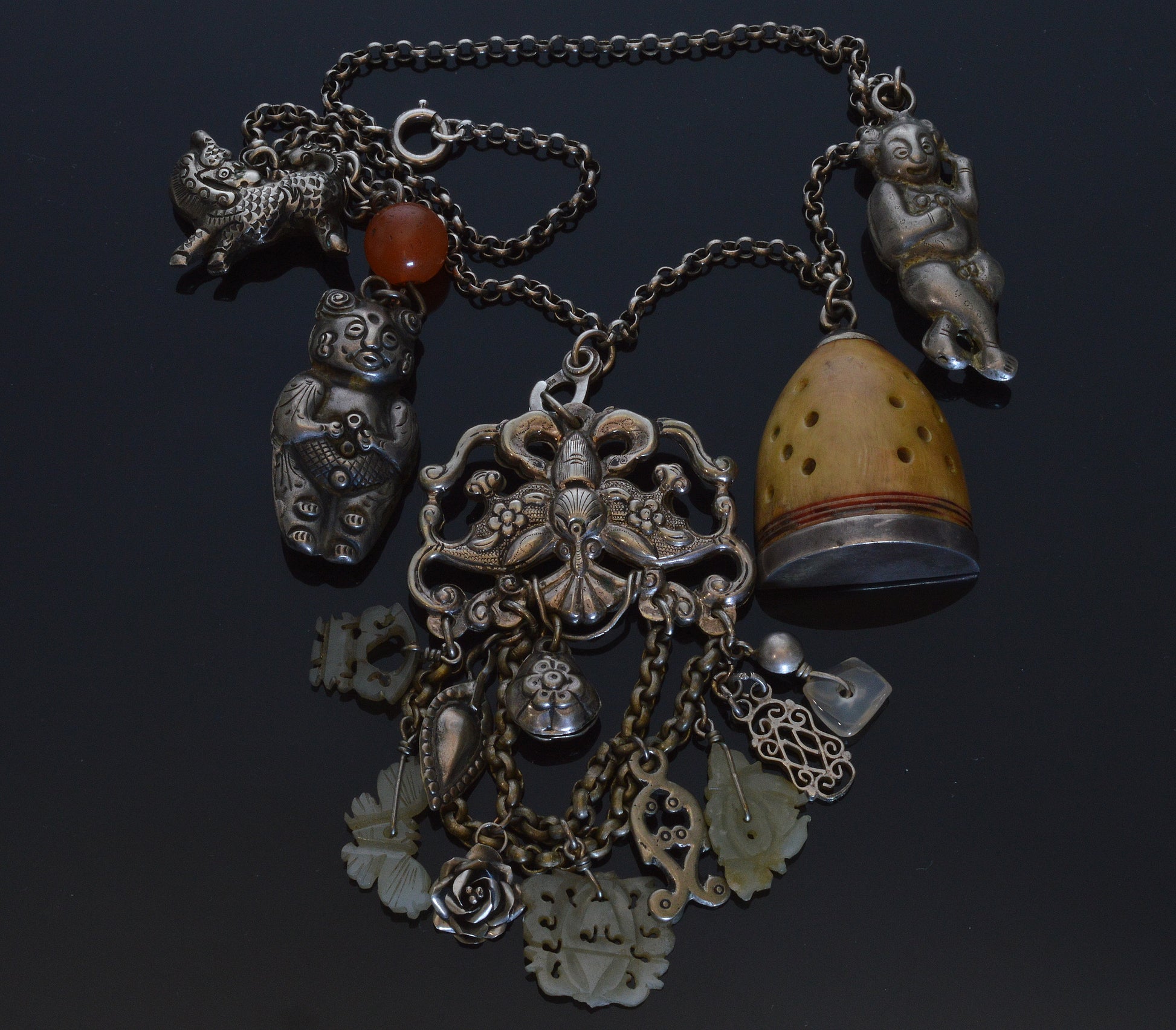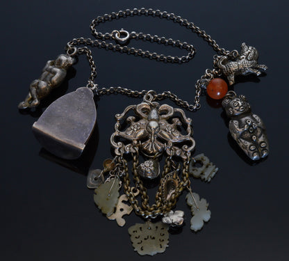 One of a kind antique Chinese silver charm chain necklace C.1890.