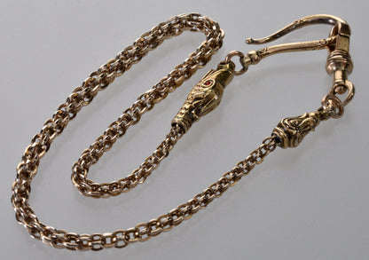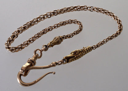 Antique Georgian 14K 10K Gold Dolphin Snake Watch Chain Necklace C.1820