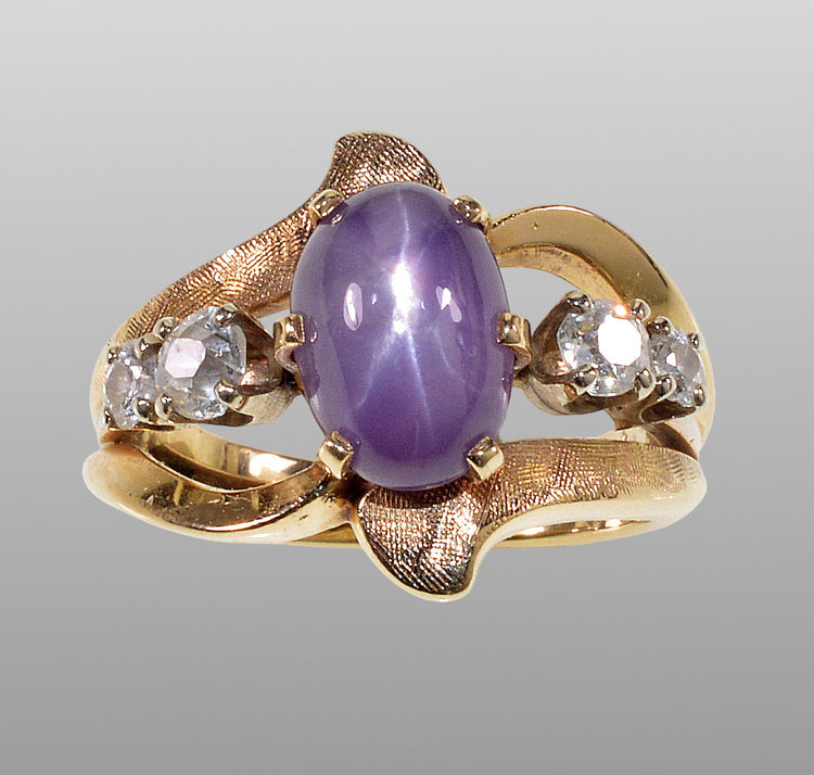 Natural Star Sapphire Diamond 14K Gold Ring Size 4 C.1940