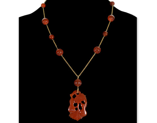 Antique Art Deco Carved Carnelian 14K Gold Chain Necklace C.1920