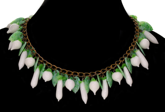 Art Deco Foil Uranium Vaseline Glass Fringe Necklace C.1920