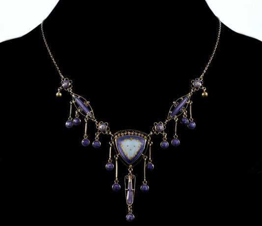 Antique Norwegian Lavender Guilloche Enamel Sterling Necklace C.1920