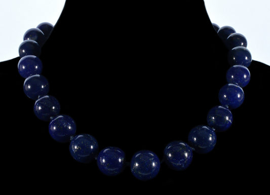 Antique Art Deco 18K Gold Large Lapis Lazuli Bead Necklace C.1920