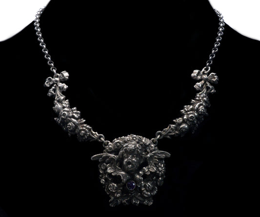 W. Kerr Antique Cherub Sterling Necklace C.1900