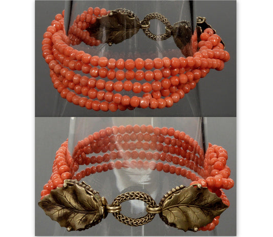 Art Deco Italian Salmon Coral Bracelet Foliage Sterling Clasp C.1920
