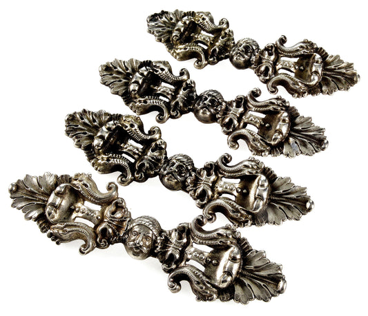 Antique Austro-Hungarian Hermann Ratzersdorfer Set of 4 Silver Cape Buckles C.1860