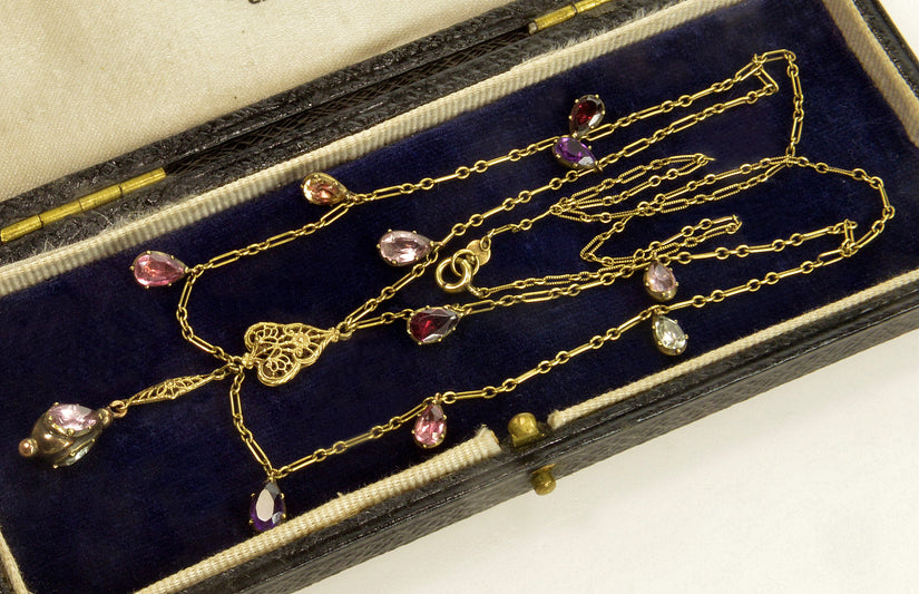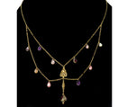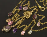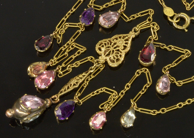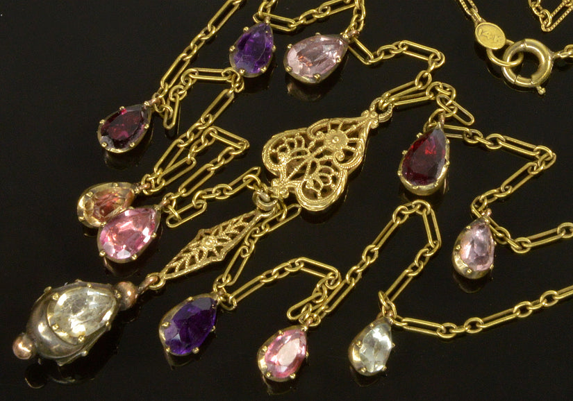 Antique Art Deco 14K Gold Chain Necklace Georgian Gemstones Drops