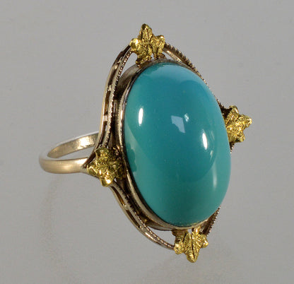 This Art Deco 14K gold turquoise ring is a rare and beautiful piece of jewelry