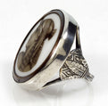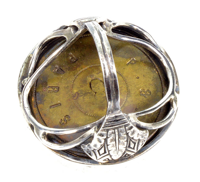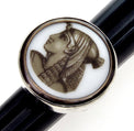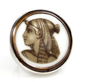 Antique French Art & Crafts Egyptian Revival Sterling Ring Cleopatra Sepia Enamel Cameo Size 7 C.1870