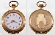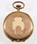 A fine quality 14K gold intricately engraved open face Swiss ladies watch C.1890.
