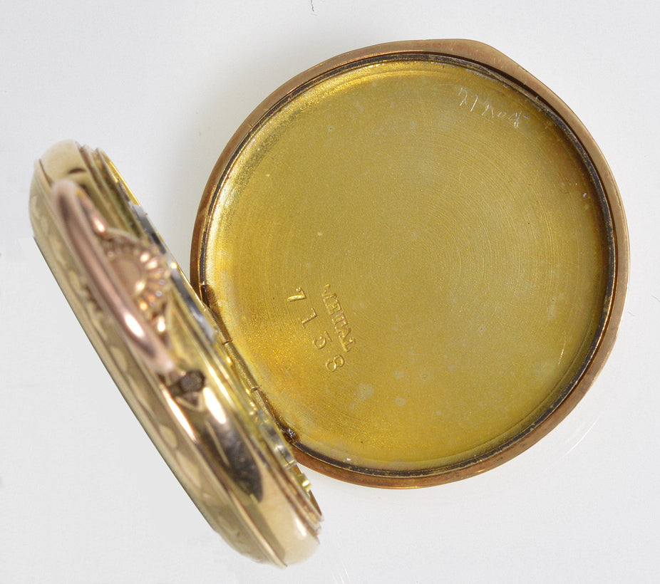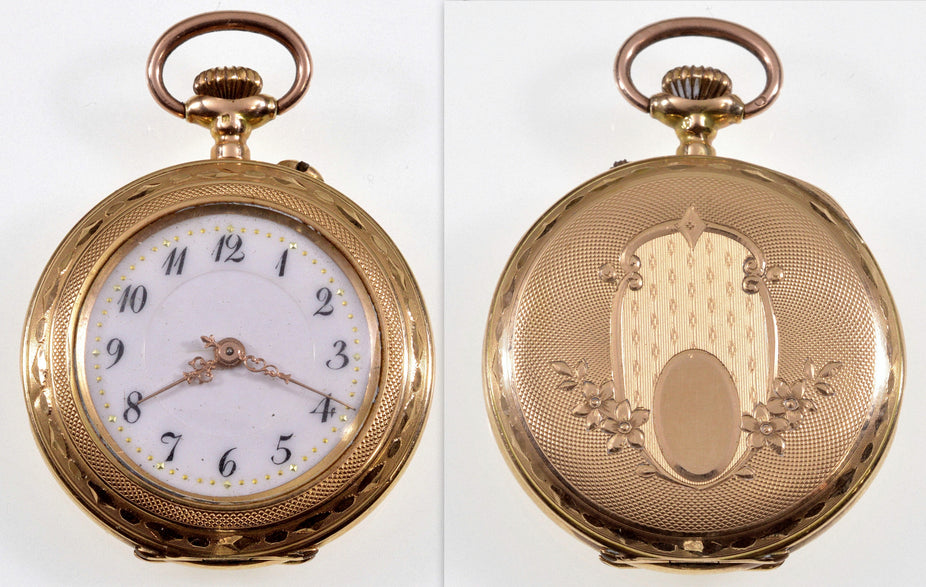 The back lid is engraved with fine guilloche pattern background