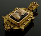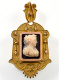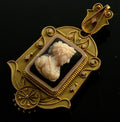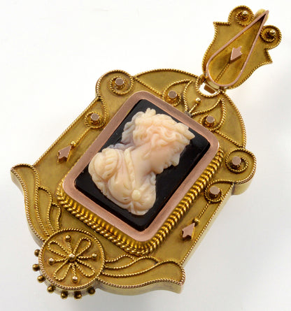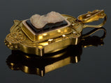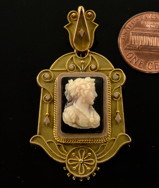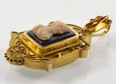 Antique Victorian 18K Gold Etruscan Revival Hardstone Cameo Locket Pendant C.1870