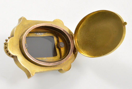 The body of the locket is made of matte 18K gold adorned with Etruscan granulation and cannetille.