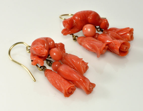 Rare find, Victorian hand carved natural salmon coral 14K gold