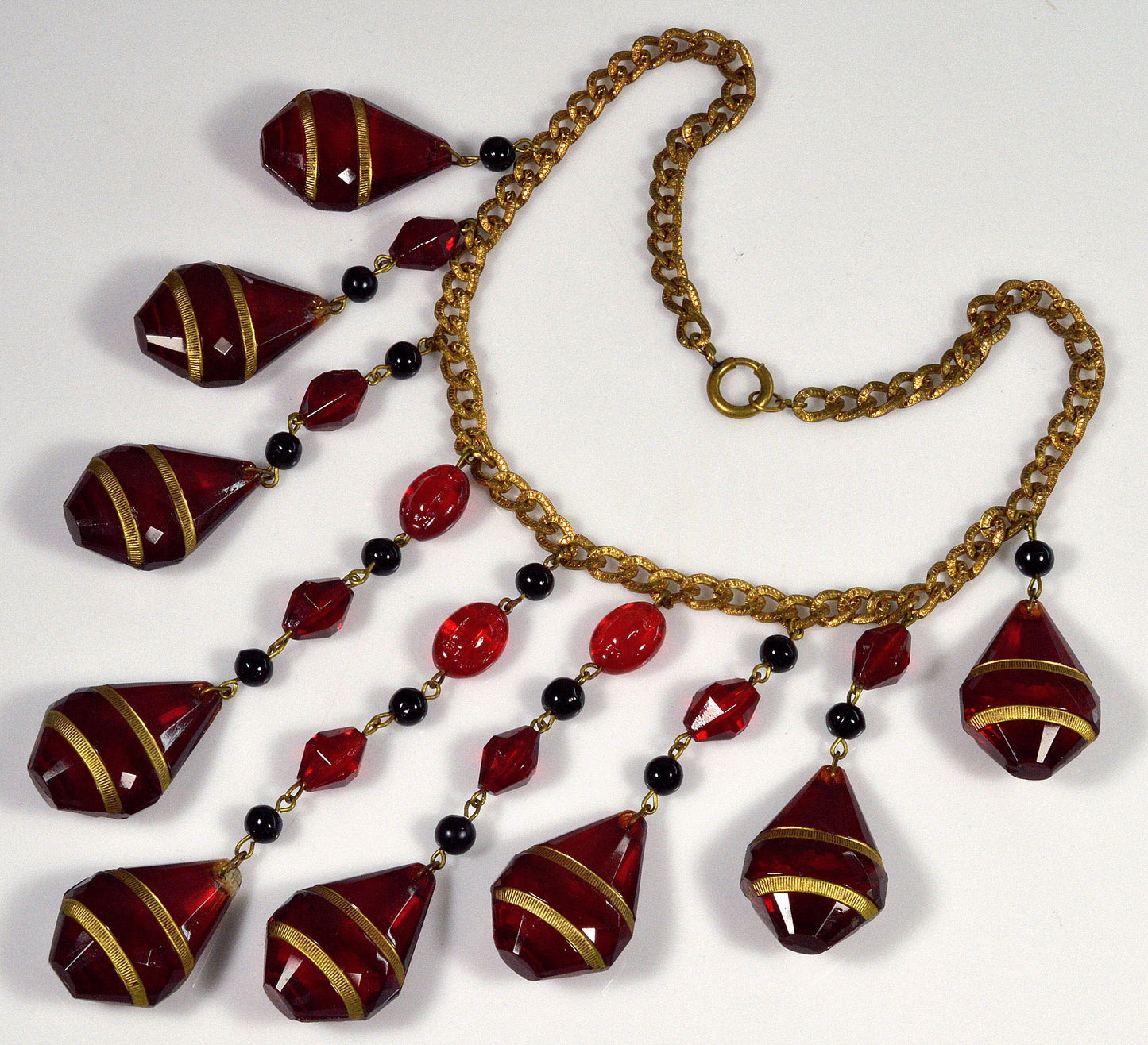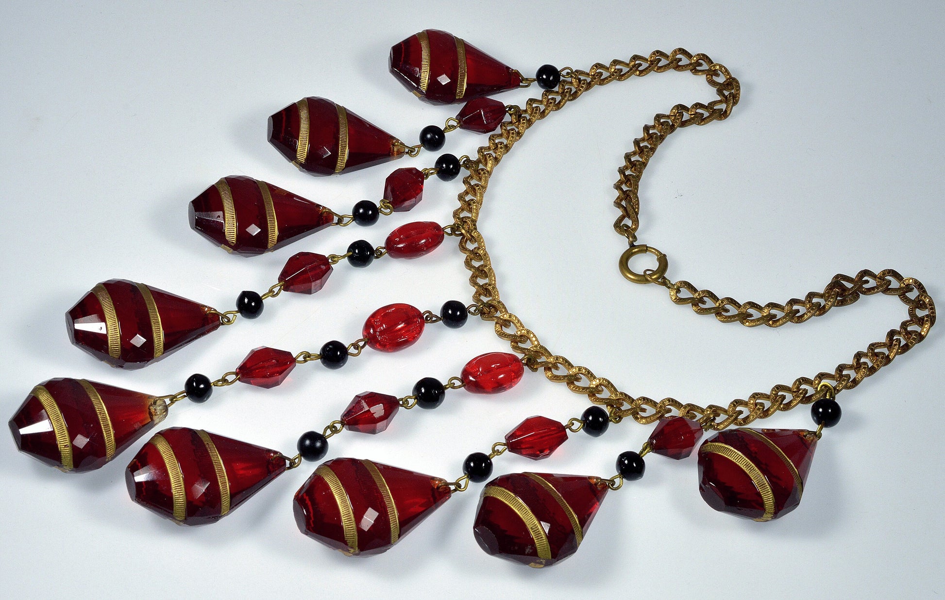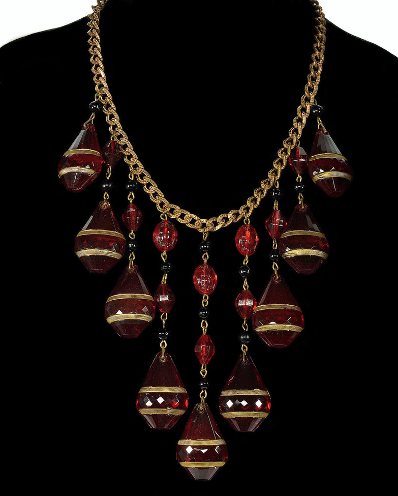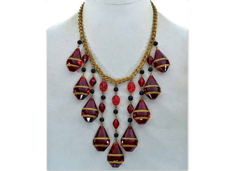 Huge Czech ruby glass cascade necklace from Art Deco period.