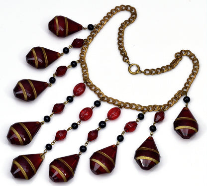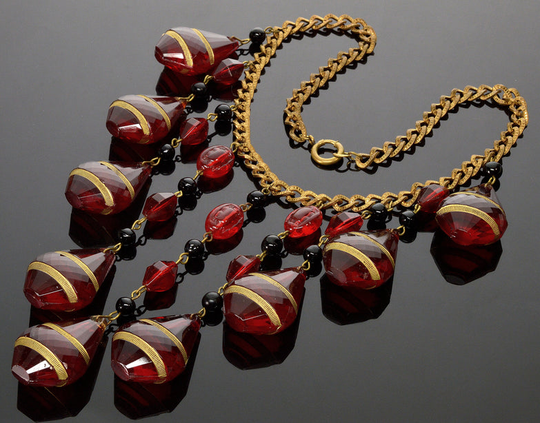 Art Deco Ruby Glass Cascade Necklace Signed Czechoslovakia C.1920