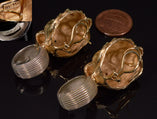 MAZ Large Lion's Head Earrings Bracelet Set 14K Gold Sterling Emerald