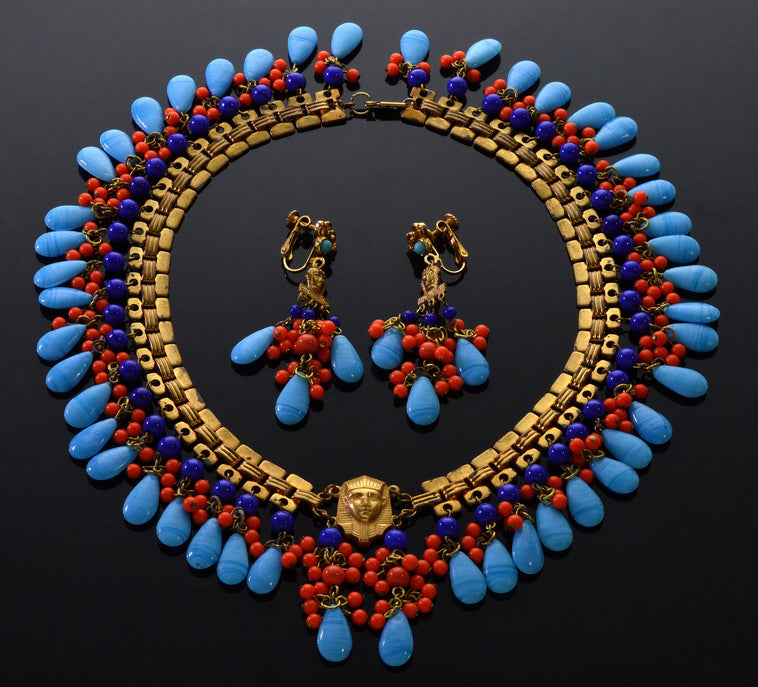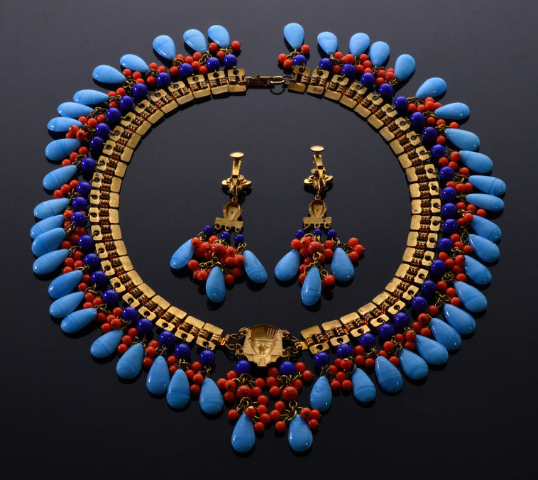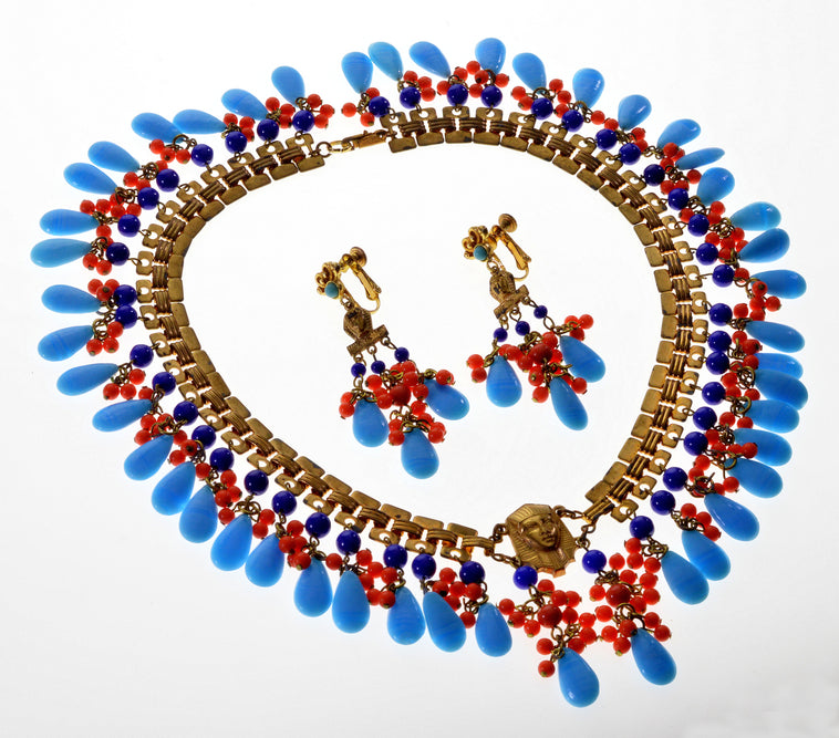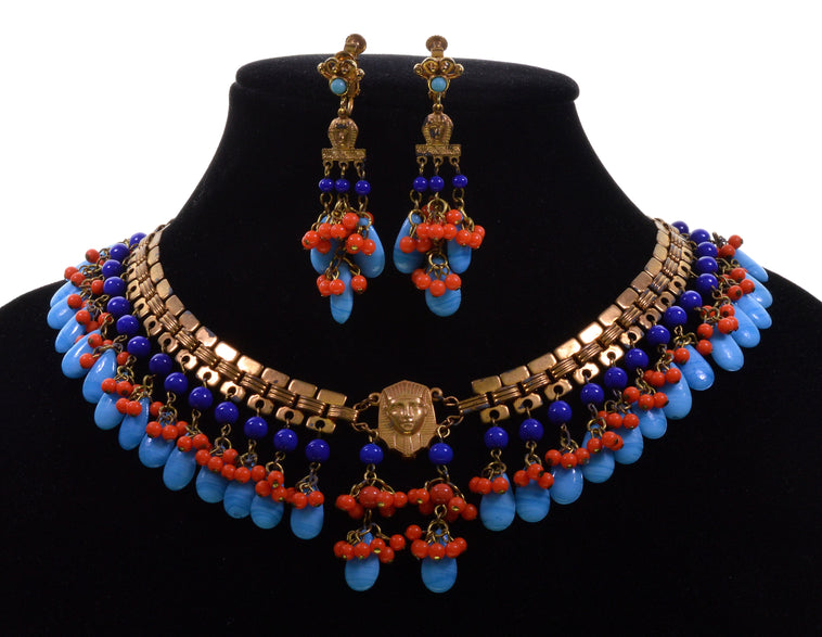 Miriam Haskell Egyptian Revival Necklace Earrings C.1970