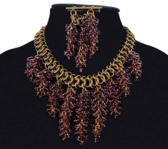 Miriam Haskell Purple Poured Glass Waterfall Necklace Brooch Set C.1930 003881