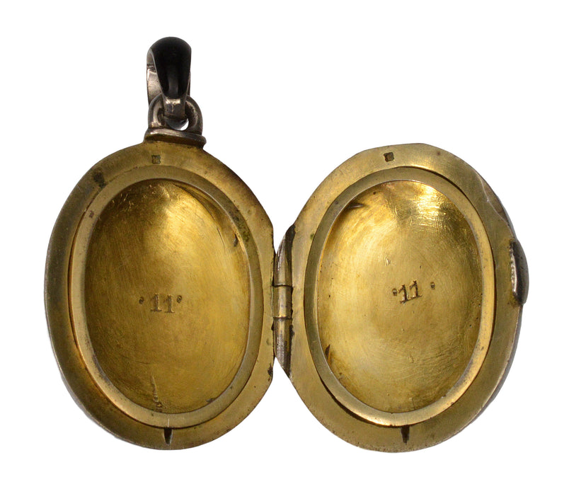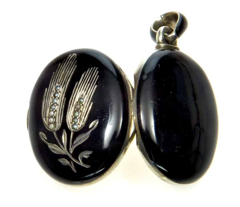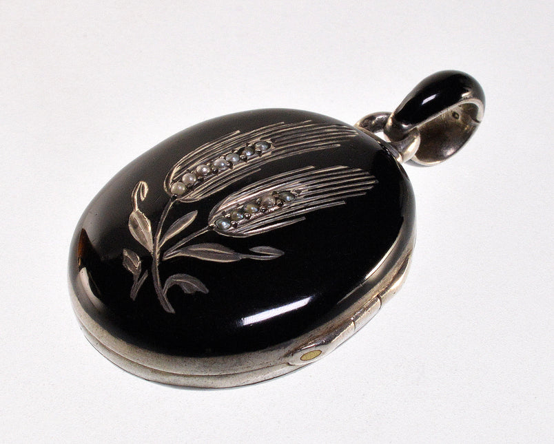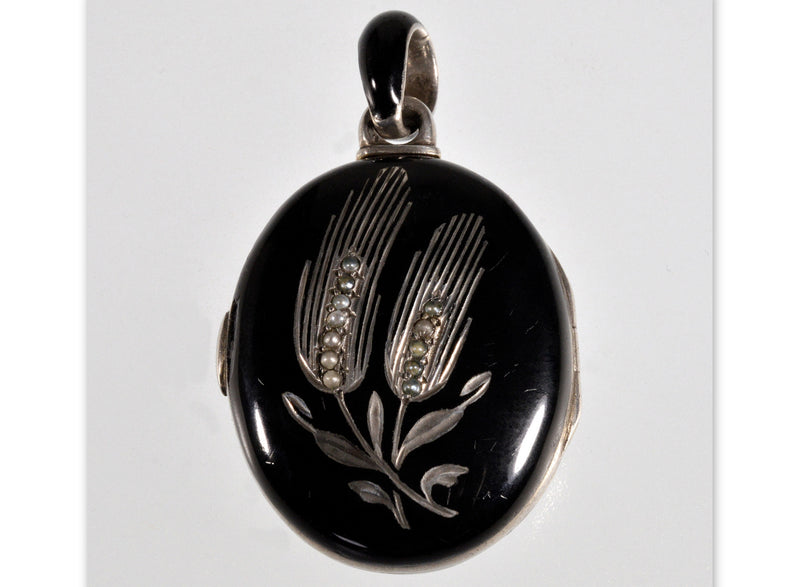 Victorian Enamel Seed Pearl Silver Locket Pendant C.1880