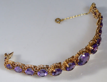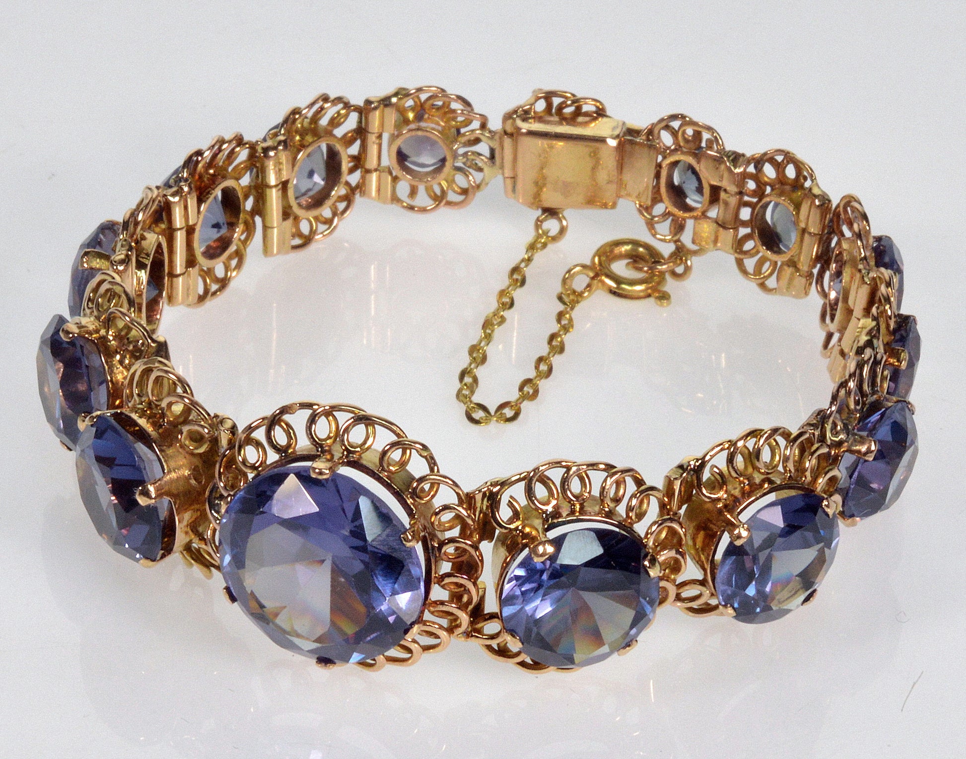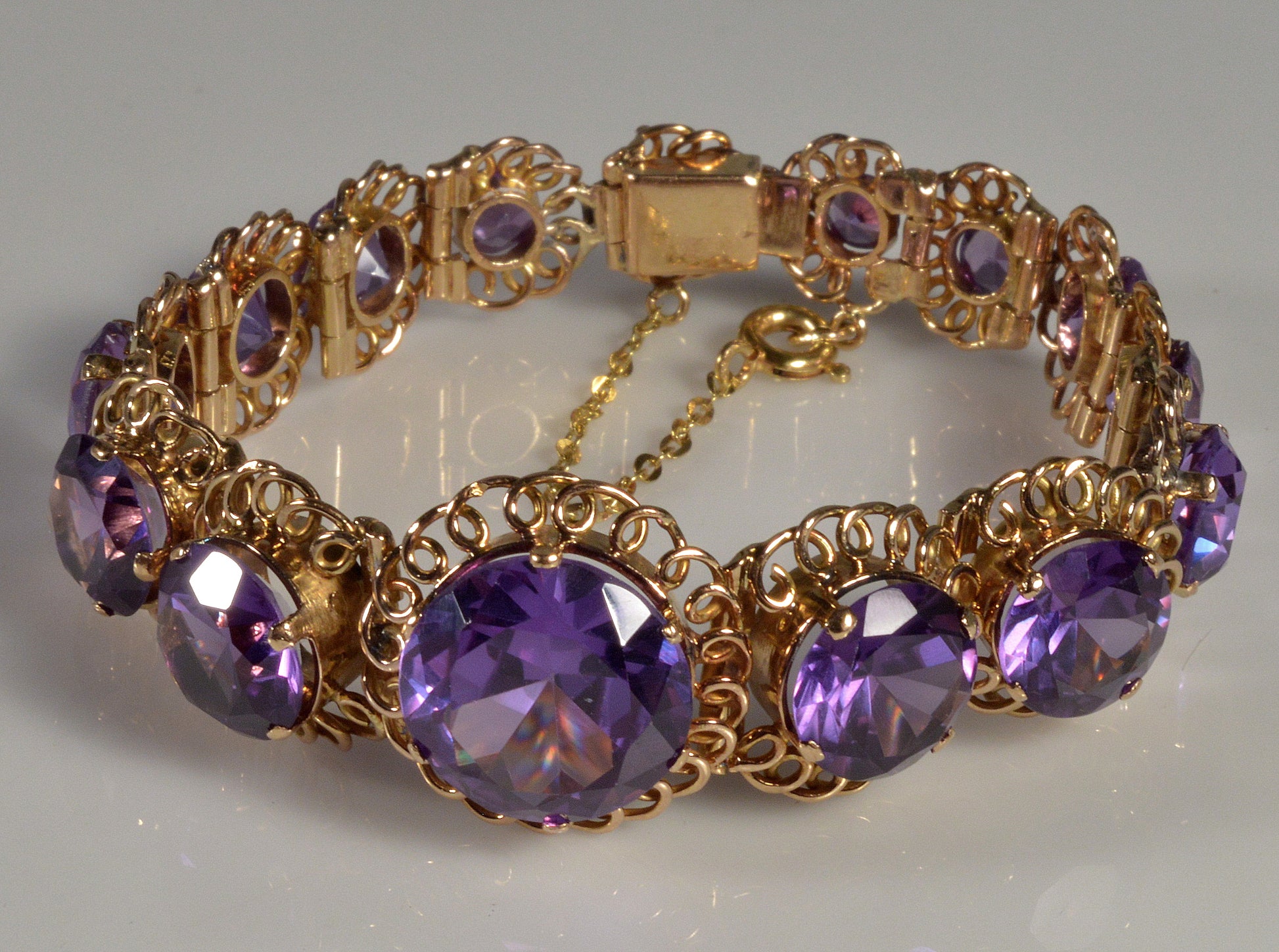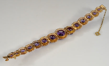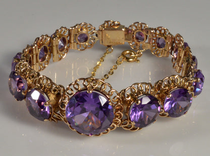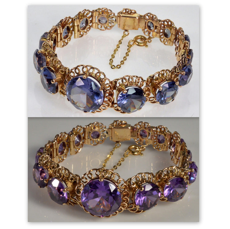 Vintage 18K Gold Color Changing Lab Alexandrite Bracelet C.1970