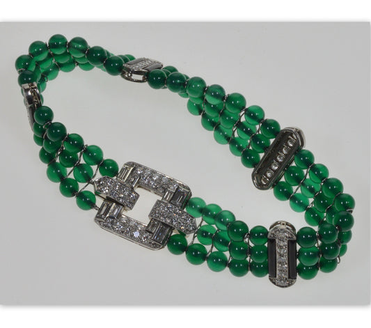 Art Deco Platinum Diamond Chrysoprase Onyx Bracelet C.1920