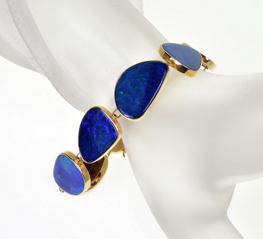 Australian Black Opal 14K Gold Bracelet C.1950 Size 7 3/8