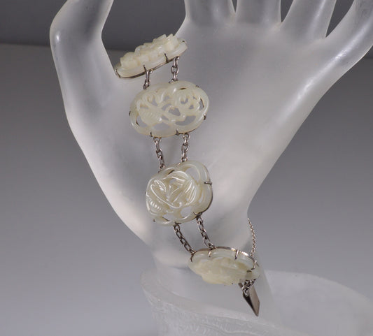 Qing Dynasty Mutton Fat Jade Sterling Bracelet Chinese C.1860
