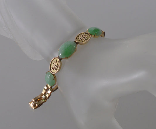 Reserved for A. Antique Art Deco 14K Gold Jadeite Jade Bracelet 7" C.1920