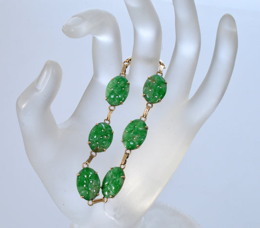 Antique Art Deco Jadeite Jade 14K Gold Link Bracelet C.1920