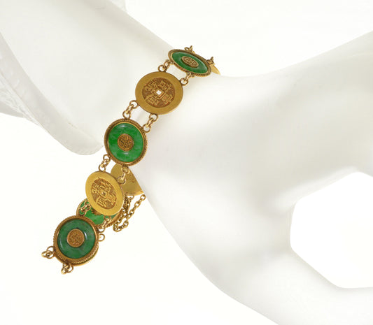 Art Deco 20K Gold Jade Coin Bracelet Chinese Export C.1920