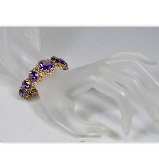 Vintage 18K Gold Color Changing Lab Alexandrite Bracelet C.1970