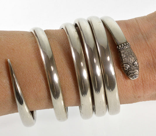 Antique Victorian Sterling Coiled Snake Bracelet C.1880
