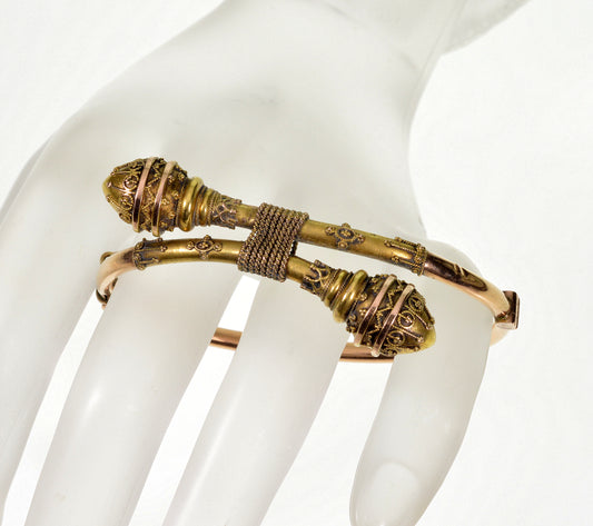 Antique Victorian Etruscan Revival 18K Gold Bypass Bracelet 5 1/2" C.1870