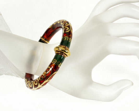 Fidia Gioielli Italian 18K Gold Sterling Enamel Bangle Bracelet
