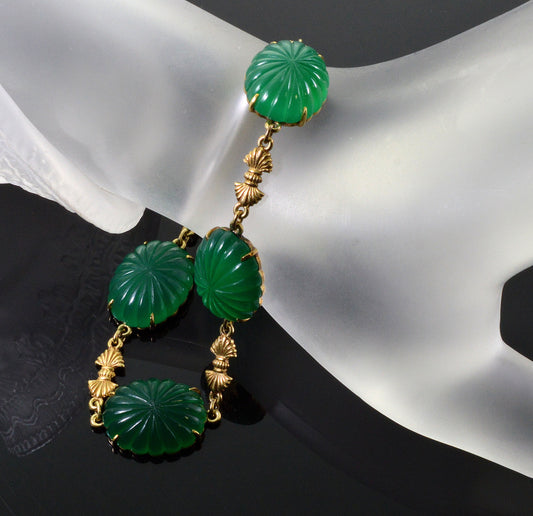 Antique Art Deco 14K Gold Chrysoprase Link Bracelet C.1920