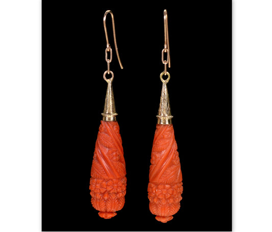 Antique Georgian 14K Gold Salmon Coral Dangle Earrings C.1820